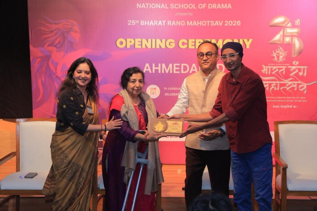 અમદાવાદ: ભારત સરકારના સાંસ્કૃતિક મંત્રાલય હસ્તકની સ્વાયત્ત સંસ્થા નેશનલ સ્કૂલ ઓફ ડ્રામા (NSD) દ્વારા ગુજરાત યુનિવર્સિટી કેમ્પસ સ્થિત ઉપાસના ઓડિટોરિયમ ખાતે તેના પ્રતિષ્ઠિત ‘૨૫મા ભારત રંગ મહોત્સવ (BRM) ૨૦૨૬‘ ના ત્રણ દિવસીય અમદાવાદ સંસ્કરણનો ભવ્ય પ્રારંભ કરવામાં આવ્યો છે. ગુજરાત ચેપ્ટરના આ ત્રિ-દિવસીય નાટ્ય મહોત્સવની શરૂઆત મહાદેવ સિંહ લાખાવત દ્વારા લિખિત અને દિગ્દર્શિત નાટક ‘ડેઝર્ટ બ્લૂમ – એ મ્યુઝિકલ ટેલ’ સાથે થઈ હતી. નોંધનીય છે કે, ભારત રંગ મહોત્સવ ૨૦૨૬નું આ અમદાવાદ સંસ્કરણ જાણીતા રંગભૂમિ અને ચલચિત્ર અભિનેતા સ્વર્ગસ્થ શ્રી રાજુ બારોટને ભાવભીની અંજલિ રૂપે સમર્પિત કરવામાં આવ્યું છે. કાર્યક્રમના ઉદ્ઘાટન પ્રસંગે જાણીતા સામાજિક કાર્યકર અને ‘અમદાવાદ થિયેટર ગ્રુપ’ના ટ્રસ્ટી શ્રીમતી નફીસા રાજુ બારોટ ‘ગેસ્ટ ઓફ ઓનર’ તરીકે ઉપસ્થિત રહ્યા હતા. આ ઉપરાંત, ચેરમેનના પૂર્વ સલાહકાર અને ફિલ્મ નિર્માતા શ્રી સમીર એમ. ઉપાધ્યાય ‘સ્પેશિયલ ગેસ્ટ’ તરીકે હાજર રહીને સમારોહની શોભા વધારી હતી.