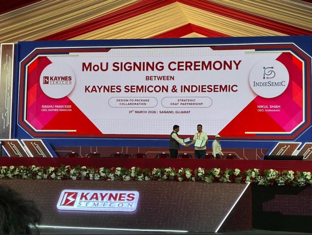 અમદાવાદ / સાણંદ, માર્ચ, 2026: ફૅબલેસ સેમિકન્ડક્ટર અને ચિપ ડિઝાઇન કંપની IndiesemiC પ્રાઇવેટ લિમિટેડ દ્વારા ગુજરાતના સાણંદ સ્થિત અગ્રણી આઉટસોર્સ્ડ સેમિકન્ડક્ટર એસેમ્બલી એન્ડ ટેસ્ટ (OSAT) સુવિધા ધરાવતી કંપની Kaynes Semicon પ્રાઇવેટ લિમિટેડ સાથે એમઓયુ પર હસ્તાક્ષર કરવામાં આવ્યા છે. આ ભાગીદારી દેશની અંદર જ ચિપ ડિઝાઇન અને બેકએન્ડ મેન્યુફેક્ચરિંગ ક્ષમતાઓને એકસાથે લાવીને ભારતના સેમિકન્ડક્ટર ઇકોસિસ્ટમને મજબૂત કરવા તરફનું એક વ્યૂહાત્મક પગલું છે. આ સહયોગનો મુખ્ય ઉદ્દેશ્ય IndiesemiC ના અલ્ટ્રા-લો પાવર અને કોમ્પેક્ટ સિસ્ટમ-ઇન-પેકેજ (SiP) મોડ્યુલ્સ અને SoCs ના વધતા પોર્ટફોલિયો માટે QFN40, QFN64 અને અન્ય પરસ્પર સંમત સેમિકન્ડક્ટર પેકેજોના ક્વોલિફિકેશન, એસેમ્બલી અને ટેસ્ટિંગ માટે એક માળખું સ્થાપિત કરવાનો છે. આ આપણી મેડ ઇન ઇન્ડિયા સિક્યોર ચિપનું જ વિસ્તરણ છે, જેને આપણે સ્વદેશી VEGA પ્રોસેસર સાથે બનાવી રહ્યા છીએ અને જેના માટે કેન્સ Kaynes OSAT કામગીરી સંભાળશે
