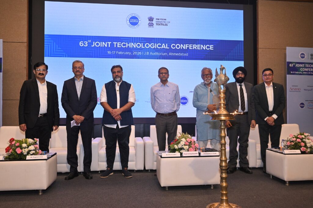 અમદાવાદ, 16  ફેબ્રુઆરી 2026 : ભારત સરકારના ટેક્સટાઈલ મંત્રાલયના સહયોગથી ATIRA, BTRA, SITRA અને NITRA દ્વારા સંયુક્ત રીતે આયોજિત 63મી જોઈન્ટ ટેકનિકલ કોન્ફરન્સ (JTC) નું આજે અમદાવાદમાં ભવ્ય ઉદ્ઘાટન કરવામાં આવ્યું હતું. આ કોન્ફરન્સનું યજમાન પદ અમદાવાદ ટેક્સટાઈલ ઈન્ડસ્ટ્રીઝ રિસર્ચ એસોસિએશન (ATIRA) સંભાળી રહ્યું છે.