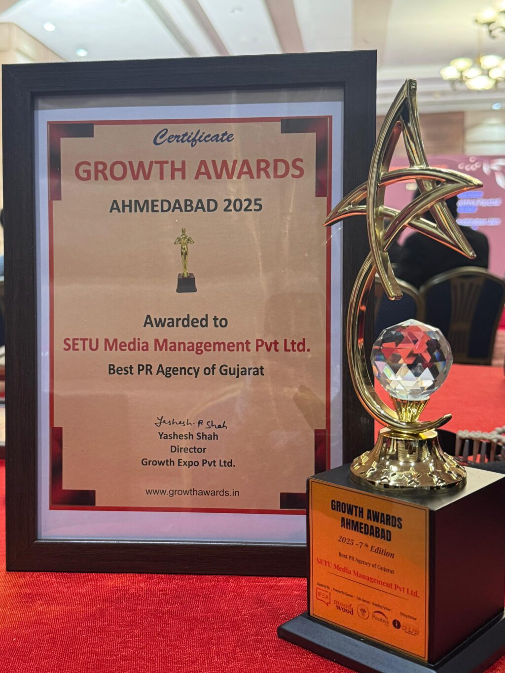 ગ્રોથ એવોર્ડ્સ 2025માં સેતુ મીડિયા મેનેજમેન્ટ પ્રા. લિ.ને મળ્યો “બેસ્ટ પીઆર એજન્સી ઑફ ગુજરાત”નો પ્રતિષ્ઠિત એવોર્ડ