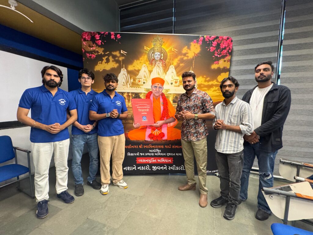 અમદાવાદ : સૌરભ રાજ્યગુરૂના સંચાલનમાં “શિક્ષાપત્રી જનકલ્યાણ અભિયાન ગુજરાત યાત્રા” શરૂ કરવામાં આવી છે કે જે મણિનગર શ્રી સ્વામિનારાયણ ગાદી સંસ્થાન દ્વારા આયોજિત છે. આ અભિયાન અંતર્ગત “નશાને નકારો, જીવનને સ્વીકારો” સંદેશને લોકો સુધી પહોંચાડવા માટે 8 મિનિટનું સ્ટ્રીટ પ્લે(રંગભૂમિ રજૂઆત) તૈયાર કરવામાં આવ્યું છે. 4 ઓગસ્ટથી તેમની આ ગુજરાત યાત્રાનો પ્રારંભ થયો છે અને તેઓ ગુજરાતના વિવિધ શહેરો અને ગામડાઓમાંજઈને ચોકમાં, મોટાભાગની સ્કૂલોમાં જઈને આ નાટક બતાવે છે કે જેથી ખાસ કરીને યુવાઓમાં અને બાળકોમાં જાગૃતિ આવે. આ પહેલ ખાસ કરીને જનહિતને ધ્યાનમાં રાખીને કરાઈ છે.